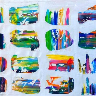 Titel “Organic Taronja 21” (2023), dette stort format lærred (150 x 80 cm) afbilder en eksplosion af farve og materiale, hvor kunstneren udforsker grænserne mellem det organiske og det abstrakte. Fiel til sit sprog, arbejder Llaverias med intense pigmenter i næsten ren tilstand, hvilket skaber en levende, dynamisk og energifyldt