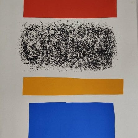Titel: Tyreisk krampe – Komposition i blå, gul og rød