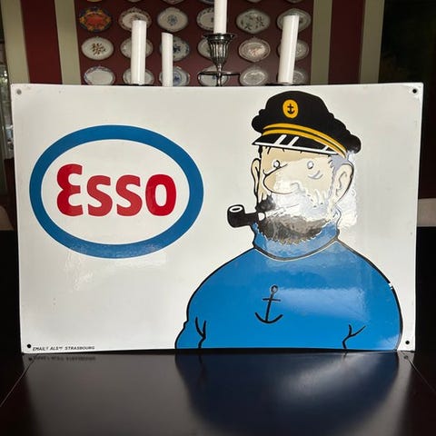 ESSO XL Thanks for Comming In er en reproduktion af en emaljeret plade af stål fremstillet i Tyskland, i fremragende stand, industriel designstil, 2000–2010, mål 60 × 50 × 2 cm, vægt 4 kg. Klik på den blå "gå til varen" knap, for at købe eller byde på denne vare. Den samlede pris vil blive vist inden du afgiver dit bud.