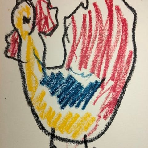 Smuk farverig pastelkridt-tegning af Anton Heyboer fra 1980'erne, der forestiller en høne