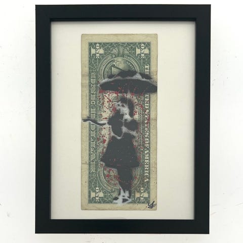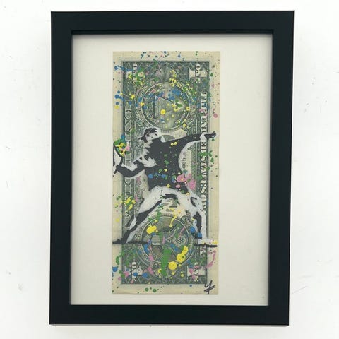 WhyCreationz præsenterer Dollar Art - Banksy Series: Girl with the Balloon, en 2025-udgave nr. 7 med stencils og akryl på et originalt 1-dollars seddel, 19 × 15 cm, 1 kg, signeret i pladen og håndsigneret, produceret i Nederlandene, i fremragende stand og leveret med COA. Klik på den blå "gå til varen" knap, for at købe eller byde på denne vare. Den samlede pris vil blive vist inden du afgiver dit bud.