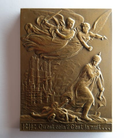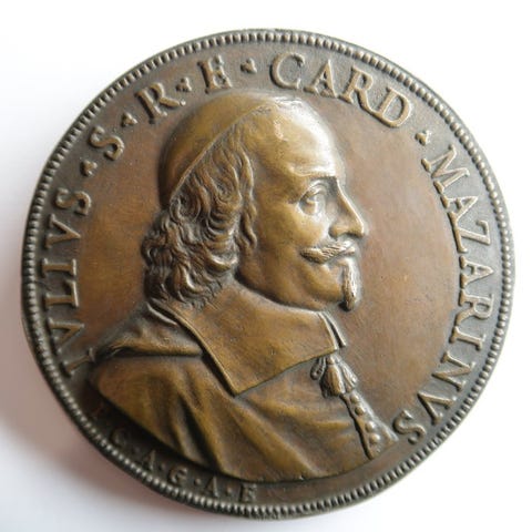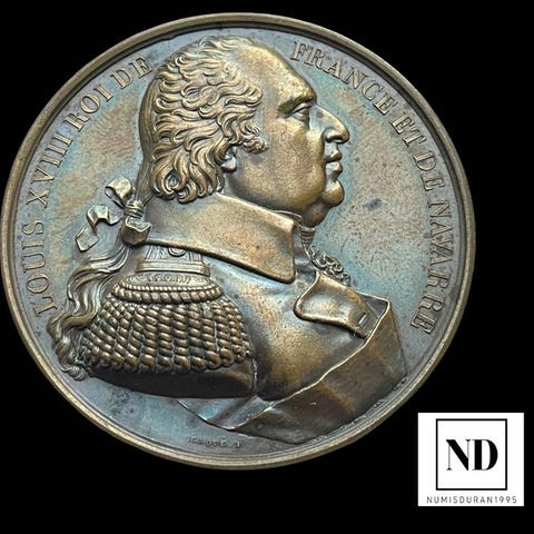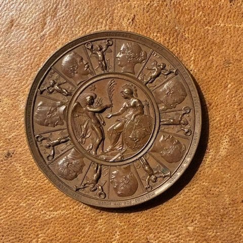 Slag og stød i felterne, på reliefferne og på kanten. Prægningen virker gammel. Ingen poinçons. Indgraveret af Duvivier.