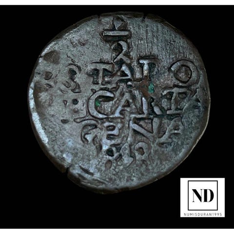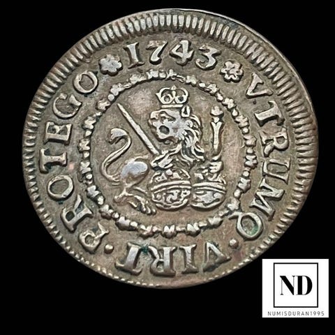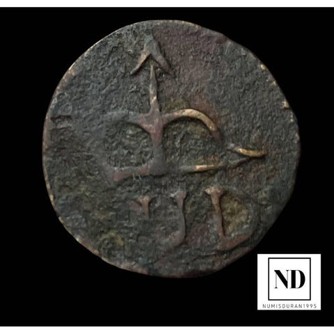 En kobbermønt på 16 maravedís fra Filip IV, præget i Madrid i 1664, vægt 3,80 g, tilstand uden certificering. Klik på den blå "gå til varen" knap, for at købe eller byde på denne vare. Den samlede pris vil blive vist inden du afgiver dit bud.