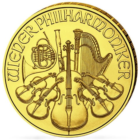 En klassiker blandt investeringsmønter - Wiener Philharmoniker blev første gang udgivet i 1989 og har siden da været en af verdens mest eftertragtede guldanlægs-mønter. Udgaven er præget af Münze Österreich i en 1/2 oz 99,99% ren guld. Siden den første præge har motivet for den eftertragtede investeringsmønt ikke ændret sig og viser instrumenter fra det berømte Wiener Orkester. Man kan se et Wienerhorn, et fagot, en harpe, midt for et cello og ved siden af til venstre og højre hver en viola og