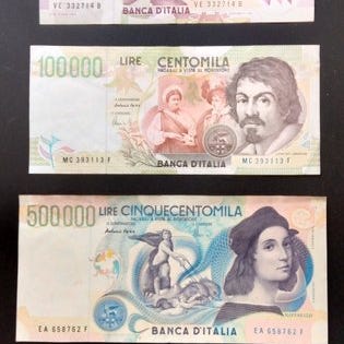 Lotto banknoter og mønter ITALIEN: