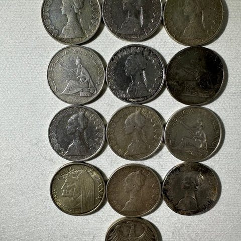 Gemischtes Lot italienischer Vor-EU-Noten und Münzen, einschließlich 2 Lire 500 Banknoten, 1 Lire 1000 Banknote, 18 Silbermünzen Lire 500 Caravelle, 1 Silbermünze Lire 500 Quadriga, 1 Münze Lire 1 geprägt 1940, 1 Münze Lire 0,50 geprägt 1939, 2 Münzen Lire 50 geprägt 1996, 1 Blister aus 50 Stück Lire 200 geprägt 1994 zur Erinnerung Arma Carabinieri, 1 Münze Lire 200 geprägt 1992 für Weltmesse Briefmarken Thematische, 1 Münze Lire 500 geprägt 1995 – Republik San Marino – FAO 50‑Centenar, 1 Münze Lire 500 geprägt 1995 – Republik San Marino – Adveniat Regnum Viri, 1 Münze Lire 500 geprägt 1995 – Klik på den blå "gå til varen" knap, for at købe eller byde på denne vare. Den samlede pris vil blive vist inden du afgiver dit bud.