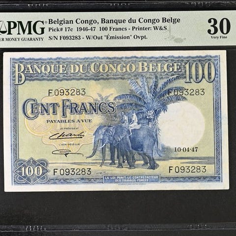 Vestafrikanske Stater 1965 100 Francs banknote Pick 801Te, kodebogstav T for Togo, bedømt af PMG EPQ som Superb Gem Uncirculated 67, certifikat 8074661-025. Klik på den blå "gå til varen" knap, for at købe eller byde på denne vare. Den samlede pris vil blive vist inden du afgiver dit bud.