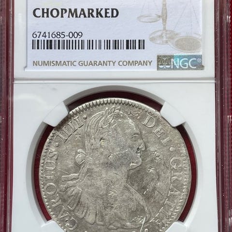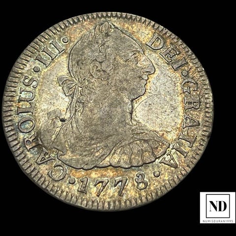 En sølvmønt på 2 escudos af Karl III, præget i 1779 i Mexico under Spanien, vægt 6,44 g Ag, tilstand uden certificering. Klik på den blå "gå til varen" knap, for at købe eller byde på denne vare. Den samlede pris vil blive vist inden du afgiver dit bud.