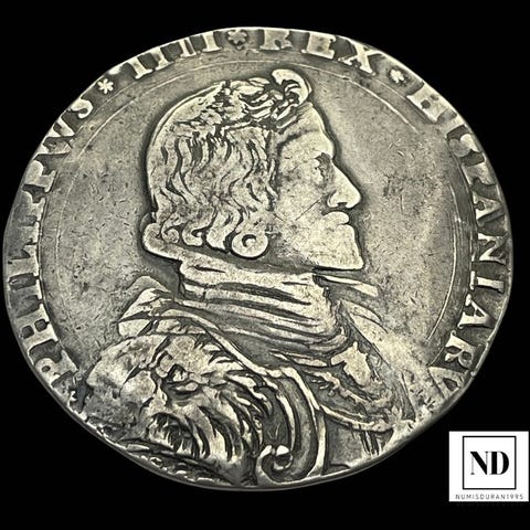 Sølvducaton fra Filip IV, 1660, præget i Antwerpen (Amberes), vægt 32,19 g Ag, tilstand uden certifikat. Klik på den blå "gå til varen" knap, for at købe eller byde på denne vare. Den samlede pris vil blive vist inden du afgiver dit bud.