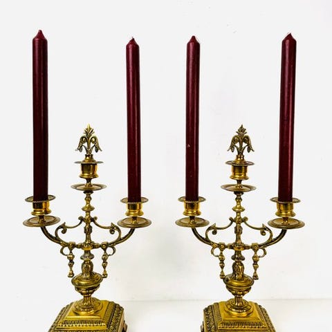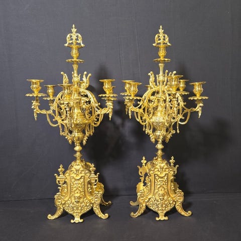 Kandellerne vejer 6,2 kilo pr. stk. Disse kandeller er fra omkring 1880. 140 år gamle og i god stand.. fransk kvalitet. Bemærk. Denne auktion er kun for kandellerne. Pendulen bliver også i dag auktioneret på denne side.