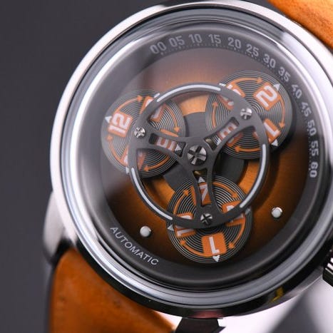 La Magma-01 er et moderne stykke signeret AKOR, udstyret med en alternativ visning kaldet “Heure Magique”: tre cifrede skiver gør en rotation på 360° under en central bue, hvilket giver en legende og mekanisk læsning af tiden.