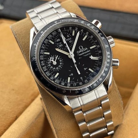 Omega Speedmaster Reduced Schumacher rød urskive, reference 3510.61.00, 1990’erne, automatisk bevægelse, stål kasse og lænke, 39 mm, rød skive, stand meget god med mindre slitage. Klik på den blå "gå til varen" knap, for at købe eller byde på denne vare. Den samlede pris vil blive vist inden du afgiver dit bud.