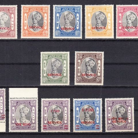 Complett serie Maharao Raja Ishwari fra Bundi-staterne, udgivet i 1949, i mint tilstand uden gum, god centrering, SG 79/85. Klik på den blå "gå til varen" knap, for at købe eller byde på denne vare. Den samlede pris vil blive vist inden du afgiver dit bud.