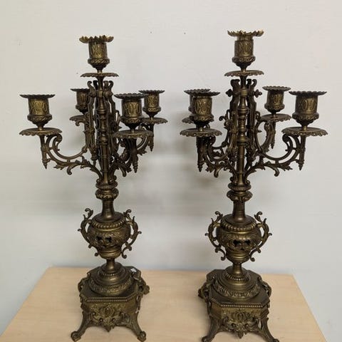 Antik Delft- og bronzekaminur garniture fra 1850–1900, i fremragende stand med minimale brugsspor, mekanisk 8-dages urværk der slår alle halvtime på en gong, 65 cm høj, 30 cm bred, 30 cm dyb, vægt 15 kg, tredelés sæt fra Belgien, nøgle til optræk mangler. Klik på den blå "gå til varen" knap, for at købe eller byde på denne vare. Den samlede pris vil blive vist inden du afgiver dit bud.