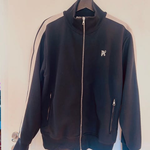 Palm angels - Hooded Checked Jacket i sort/hvid bomuld til herre, størrelse L, lynlås, løst oversized pasform, ærmelængde 55 cm, længde 80 cm, brystmål 63 cm, ikke nyt med mærke. Klik på den blå "gå til varen" knap, for at købe eller byde på denne vare. Den samlede pris vil blive vist inden du afgiver dit bud.