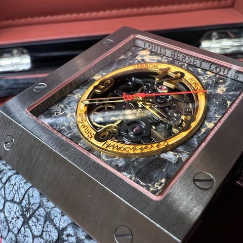 Herreur til mænd Louis Berset Genève - Bærer en forfalsket kuldskærsknivskær, kombineret med forgyldte blade. Cadran og sidepladen er forgyldte 18k guld. En enestående ur med verdens Unikke håndværk.