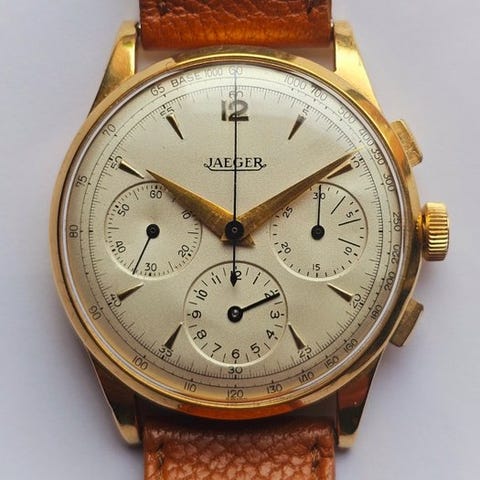 Armbåndsur mærket Eberhard & Co ekstra stærk kronograf base 1000 referens 14007 vintage, manuel optræk fra 1950’erne.