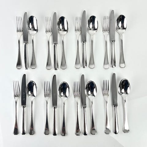 Alfénide/Christofle model Cirta, Art Déco bestiksæt på 37 dele, fremragende stand, Luc Lanel.