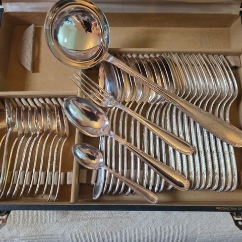 Prægtfuldt bestiksæt i alfénide sølvmetal, produceret af Christofle.