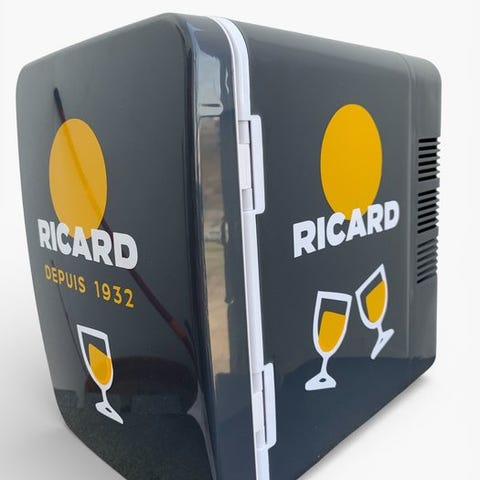 Til kapacitet til flere dåser af den berømte drik, præsenterer det den ikoniske røde farve, hvor rød er dominerende.