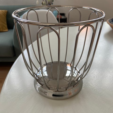 Søgeord: Rustfrit stål. Alessi kurv stor model. tidsløs stål kurv. dekoration. indretning. Alessi frugtkurv. servering. køkkenudstyr. opbevaring. Alessi citruskurv. Frugtkurv Alessi. Alessi stålkurv. strikketøjskurv. stilrent design. dansk design. Høj brødkurv i stål. Høj frugtskål i stål