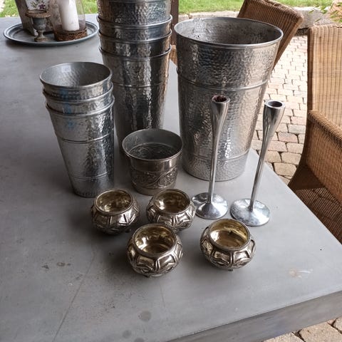 Lysestager/Vase/Urtepotter i sort malet keramik, 10 dele
