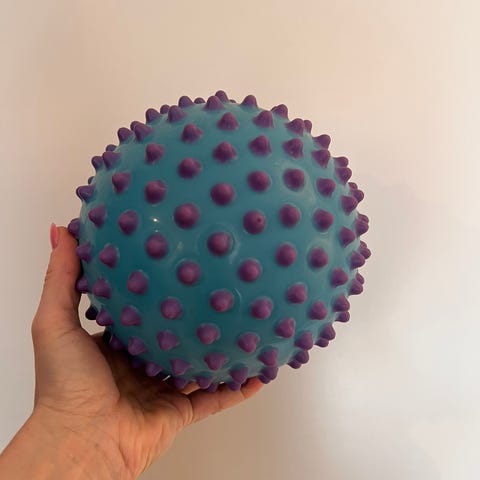Ekstra stor sansebold, perfekt til leg og gymnastik Sansebolde stimulerer sanserne, og denne store bold er også god til leg, hvor barnet får styrker deres motoriske evner og balance. Bolden er lavet af stærk, tyk plastik og kan bruges både ude og inde.