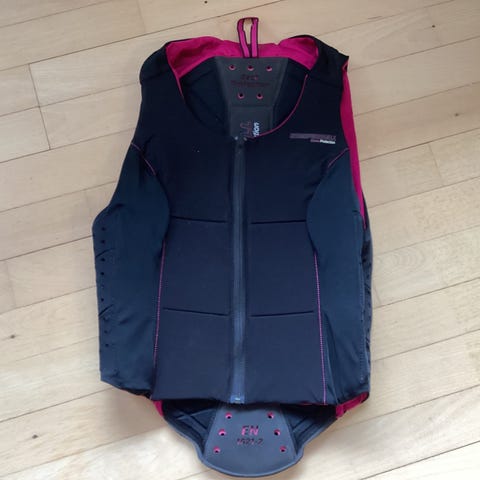 Vesten har et ergonomisk snit og er fremstillet i et blødt og fleksibelt materiale, som beskytter kroppen mest muligt også skuldre.