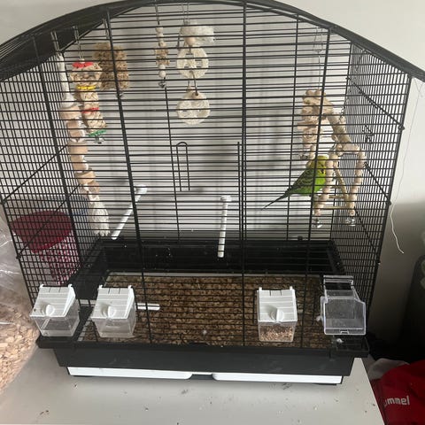 Sælger Geo fuglebur fra Omlet inkl. høj stand.