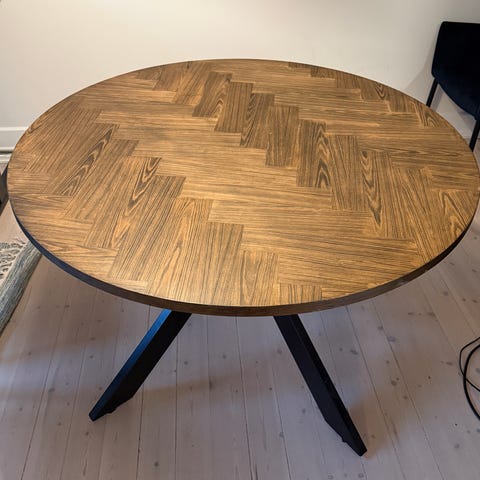 Spisebord i røget eg behandlet med træolie, måler 110x110 cm, 75 cm højt, super stand. Kan afhentes på vesterbro i kbh :)