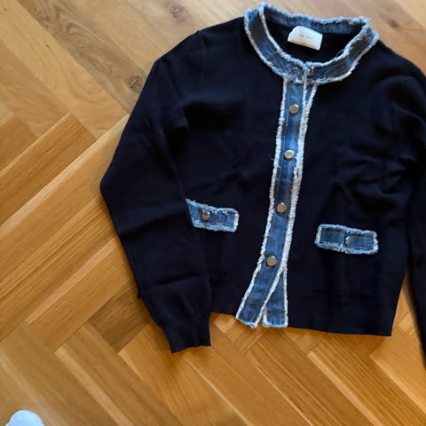 Neo Noir cardigan til kvinder i str. S. Cardiganen er sort og strikket i kashmir lignende strik. Den har rund hals og gennemgående knaplukning foran med dekorative knapper. Ærmerne er lange med let rynkedetalje ved skulderen, pufærmer. Velegnet som let striktrøje til hverdagsbrug eller over kjoler og toppe. Nypris 599 kr