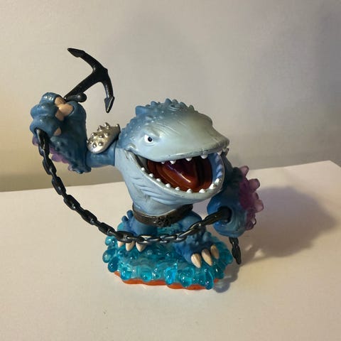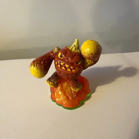 Skylanders Figur udformet som en snegl med rød skjold og grøn base. Figuren holder en slangebøsse foran sig. Den er flerfarvet med detaljer i rød, grøn, gul og hvid. Egnet som samlerfigur eller til leg for børn, der kan lide fantasifigurer og små plastikfigurer.