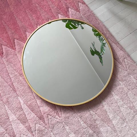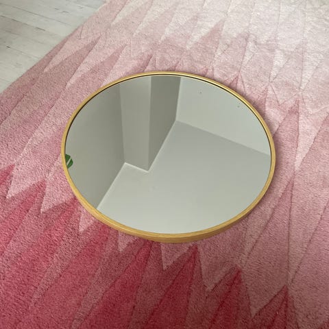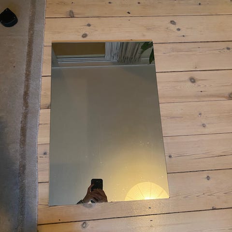 Det er et spejl der kan hænges op. Det er 94 cm højt og 60 cm bredt