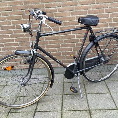 Antik Sparta-cykel, 28 tommer, med lys, 3 gear, mørkegrøn. Fremstillet i Holland, afhentning i Broager med sadeltasker