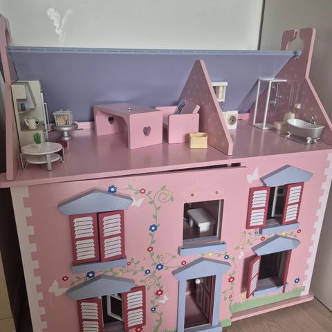 Dukkeshus med tilhørende møbler fra H&M. Brugt sparsomt i december. NYPRIS 600kr