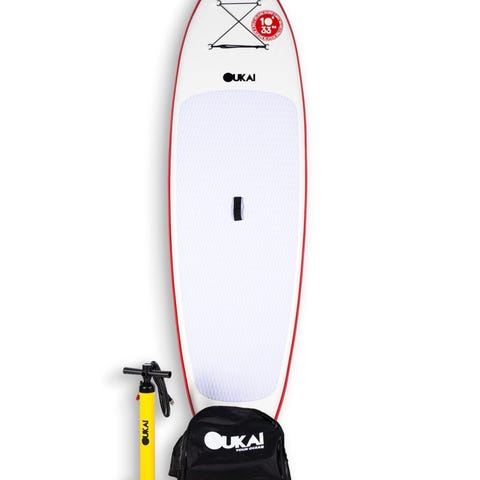 Naish Nalu oppusteligt SUP board i blå og hvid. Boardet har skridsikkert dæk, bærehåndtag og aftagelig finne. Velegnet til stand up paddle på sø, å eller kystnært vand. Leveres som oppusteligt board, der er let at transportere og opbevare, når luften er taget ud.