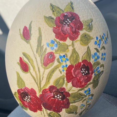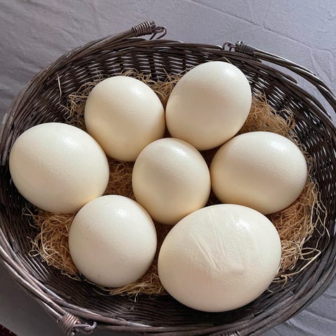 Stort strudseæg uden revner og tyk skald. Rigtigt flot.