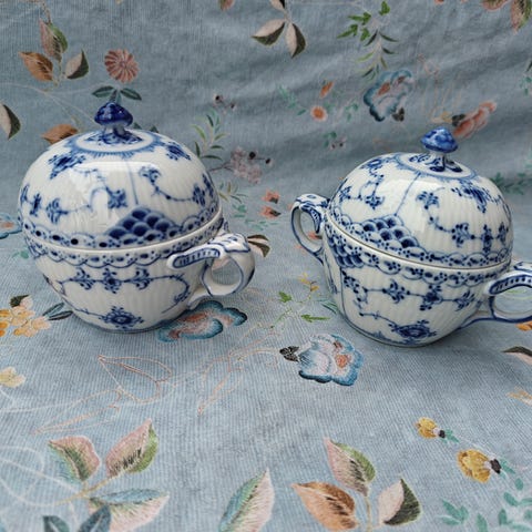 Royal Copenhagen Musselmalet Halvblonde sukkerskål nr. 691 - Perfekt stand