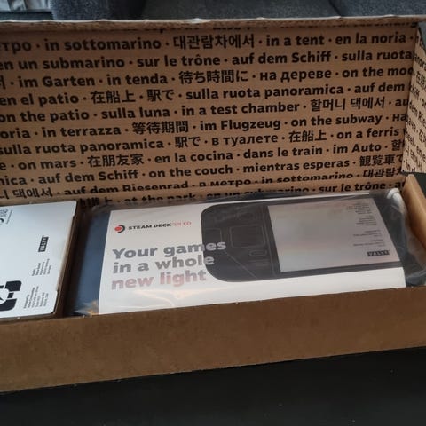 Steam deck'en medfølger den original oplader og ETUI casen med.