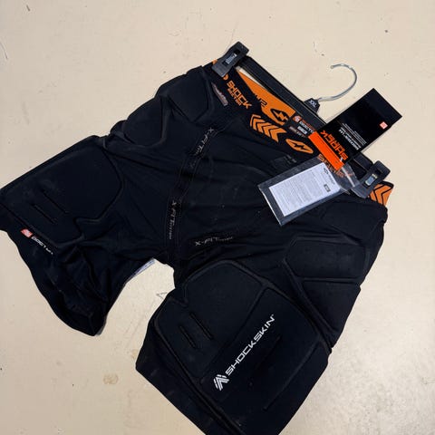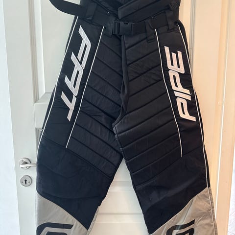 Fat Pipe floorballbukser i størrelse S i sort og grå. Bukserne er polstrede og har justerbar talje med bælte og spænde. Velegnet til brug som målmands- eller beskyttelsesbukser til floorball eller lignende indendørs sport.