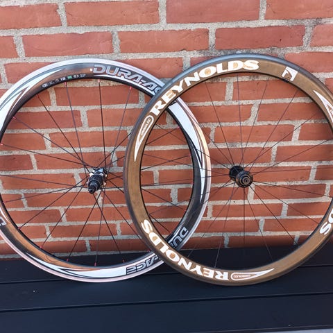 Hjulsættet har kørt få km så ses som nyt, lækre glat rullende lejer med helt lige fælg med perfekt bremseflade.