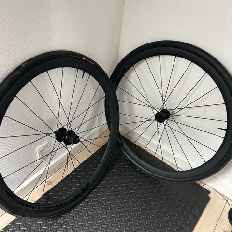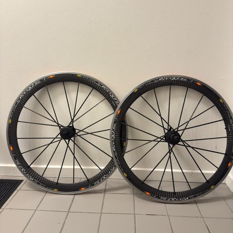 Meget sjældent hjulsæt og her i nyt eksemplar. Ultra letvægt Carbon hjulsæt til fælg bremser.