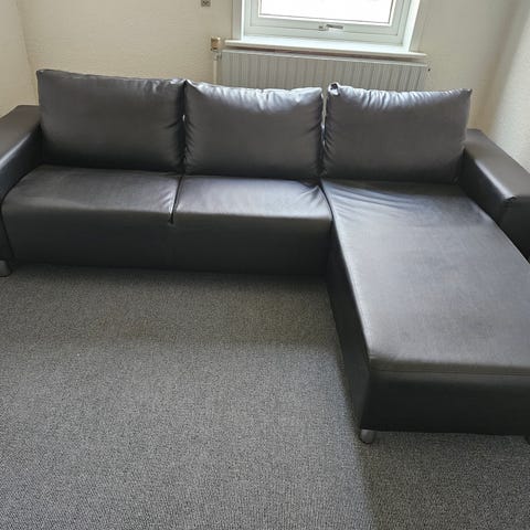 Trods den mindre størrelse, kommer sofaen med en stor chaiselong. Sofaen er brugt, men fremstår i fin stand. Sofaen er en rigtig flyder, som man sidder blødt i.