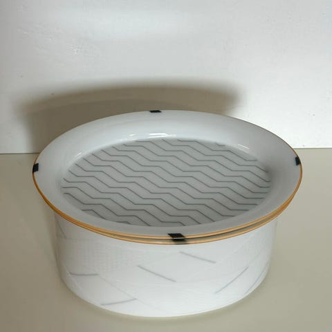 Bing & Grøndahl lågkrukke porcelæn landskabsmotiv blå/hvid