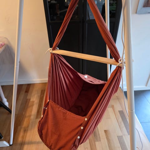 Slyngevugge fra BabyNohr med stativ, madras (inkl. lagen), motor og afstiverbund.