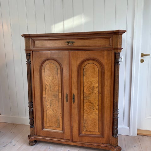 Gammelt antik skab fra C.B. Hansens Etablissement, kgl. hof-møbelfabrik. Skabet, som er meget tungt, har 2 dele (skænk og top)