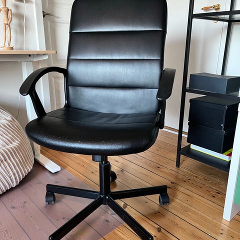 Fin kontorstol i sort fra IKEA. Mål er på sidste billede. Skal afhentes i Herning.