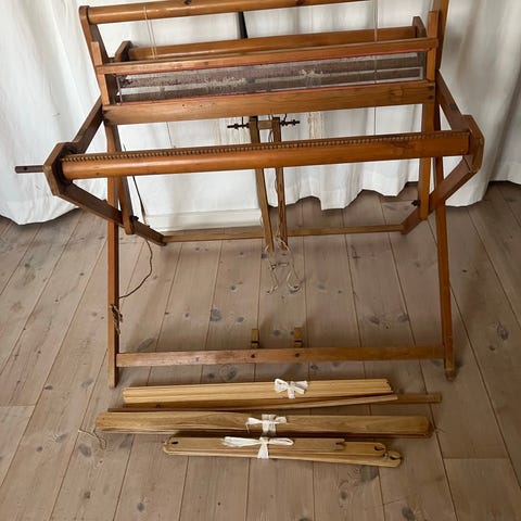 Justerbar vævebænk i bøgetræ højde 76 cm bredde 74 cm giv et bud