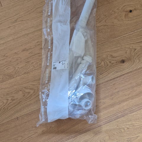 Har aldrig været i brug men monteret og taget ned igen, røret der går ind mod væggen er forkortet lidt (måler 158mm).