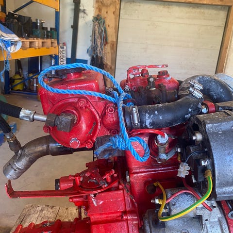 Foringer honnet, nye stempelringe ,søvandspumpe overhalet, topstykke slebet ventiler, lejer kontrolleret.